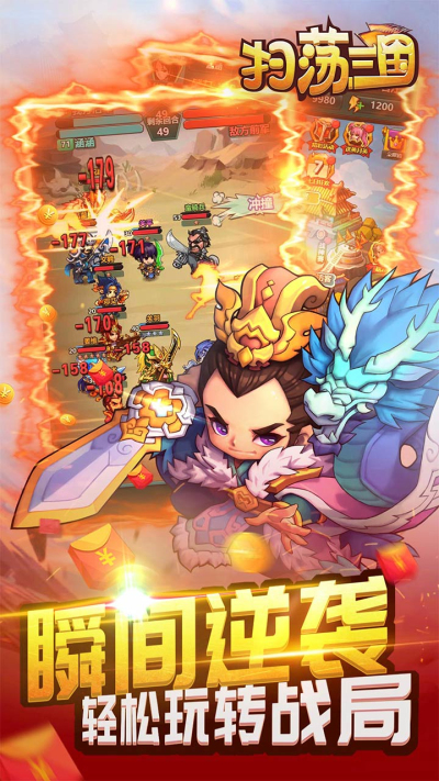 扫荡三国是一款以中国古代历史为背景的策略类手机游戏,玩家在游戏中将穿越回充满诸侯纷争的三国时期,担任一个势力的领袖,游戏着重于经营和战争两大核心玩法,玩家需要通过建设自己的城池,招募和培养武将,制定合理的行军战术,并与其他玩家进行联盟或战争,整个游戏画风精美,战斗画面生动,还原了许多著名的三国武将及其特色技能,这款游戏考验玩家的策略布局和资源管理能力,同时也有较高的社交互动性,玩家可以与朋友同盟,共同征战沙场,体验三国英雄豪杰激战群雄的紧张快感。
