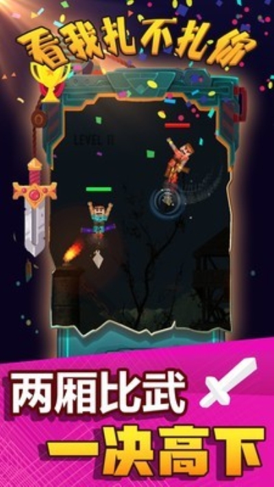 看我扎不扎你这款画面风格新颖有趣的休闲手游。简易的使用方式不仅有多种模式选择更有多种多样的武器以及超多关卡等你来对战,有着多种多样多样的游戏关卡等你来对战,随着关卡的深入难度也会不断增加,游戏里玩家们还可以在线模拟对决切磋武器。