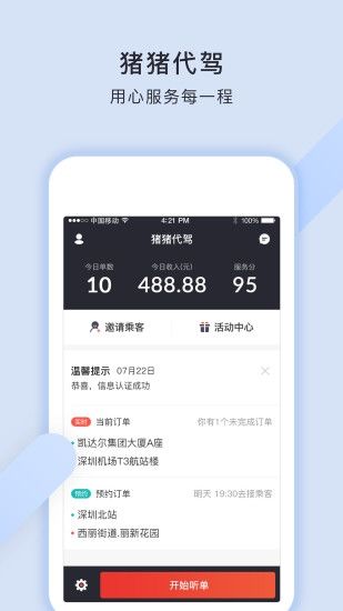 猪猪代驾可实现1秒叫代驾,为您提供源源不断的订单。