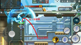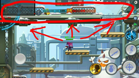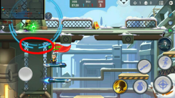 因为之前的时候说了,如果右方有时空战士,那么他就可以踩着滑板在左方旗下抢旗,面对此景是不是很无奈?只能看其拿着旗子就跑自己却什么也做不了,现在告诉你,遇到这种情况就可以用天罡、李之类可以快速解决敌人的英雄来消灭或眩晕他!如图所示,天罡可以踩着第一个台阶跳上去,然后在跳上去的瞬间按下技能放盾,告诉他,想抢旗子可没那么容易,嘿嘿。(其他英雄同理,并且如果抢旗的时候所选英雄不是时空战士或王牌飞行员也可以通过该台阶跳到旗子下方的小半圆圈,也可判定为夺旗成功)