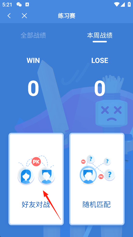 3、点击屏幕左下角的“练习赛”。