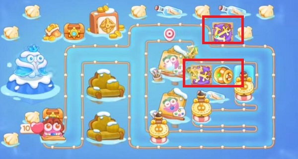 4、第五波左边添加船锚和鱼雷炮,打掉左上方宝箱之后获得一个塔防火瓶。