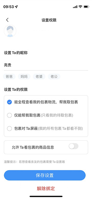 绑定亲友,一人管理亲友快递。