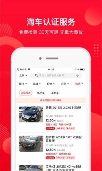 《淘车二手车》是一款非常不错的手机二手车平台,软件提供了非常全面的二手车综合服务,不论是买还是卖都能够享受到合适的服务和让您满意的价格,简单便捷的操作,严格的审车流程,同时还有丰富的功能等你来体验,有需要的朋友就来微茶网下载这款《淘车二手车》吧!