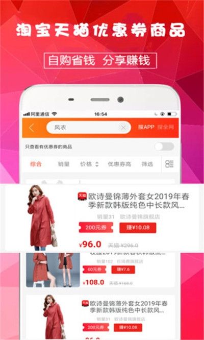 手机必备购物APP。全品类覆盖,低价折扣,底价好货。高额返利,惊喜不断,分享即得现金。成为平台代 言人更有丰厚奖励,不但购物还能赚钱! 淘宝特卖:优质好货,底价抢购; 超级搜索:瞬时找券,下单即返; 19.9包邮:每日9点上新,全程包邮; 更有神秘的福利社,更多惊喜等你来发现...