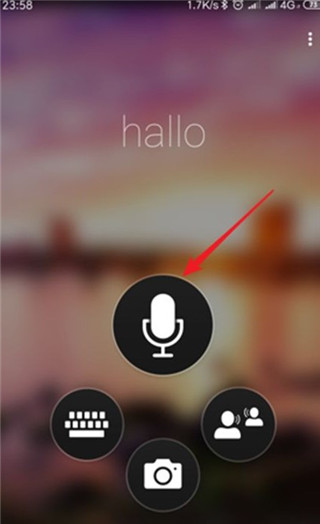 7、设置完成后,点击页面中的麦克风图标,然后说话,App就将自动进行翻译