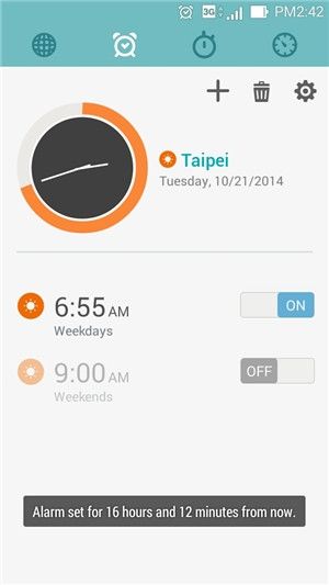 《华硕时钟》提供您最舒适的时空之旅!,至各国出差旅游时可设置显示家乡的时区,将可同时看到家乡与当地的时间。不单单是时钟,还有闹铃、倒计时、秒表,ZenUI的东西都很漂亮,马上来下载吧!