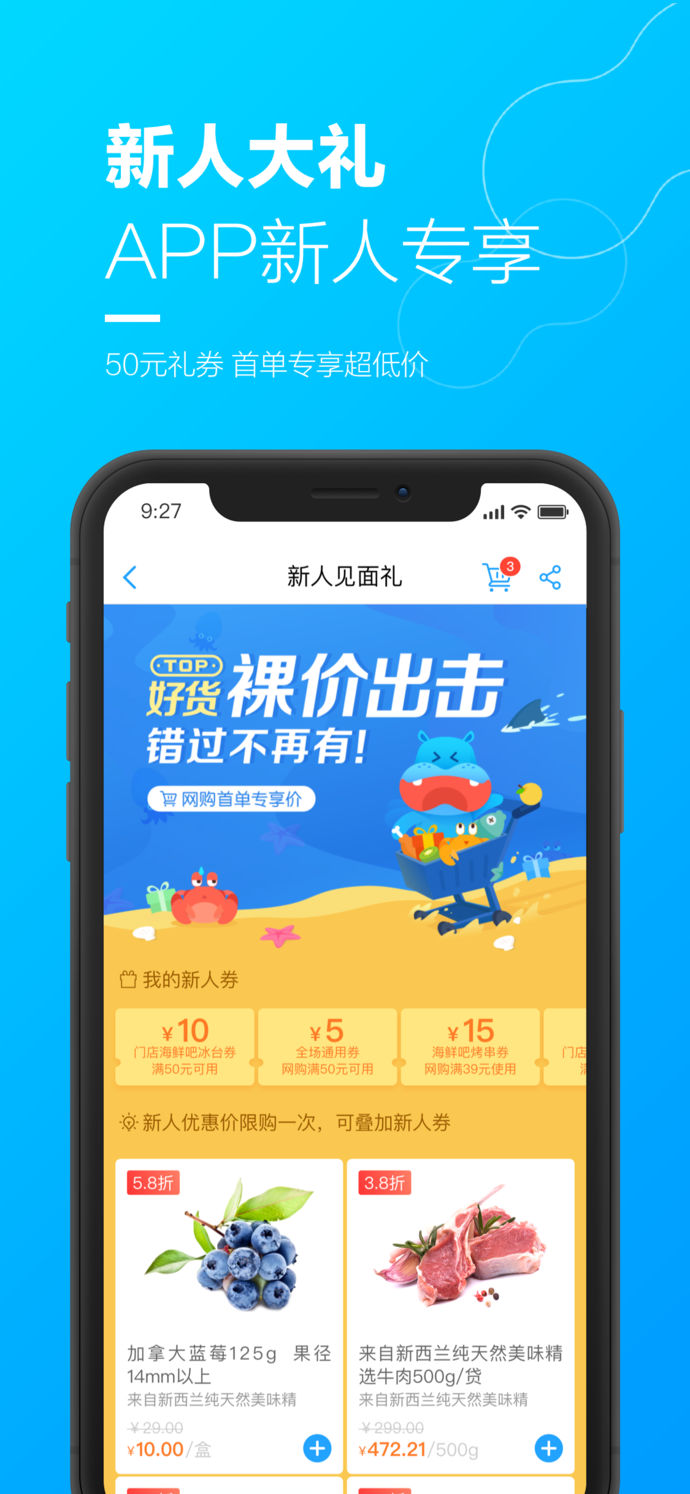 盒马,一款专为生鲜所打造的购物软件,为用户提供最新鲜最优质的商品,一站式服务,直接为用户送到家,轻松买到健康、营养的生鲜,并且配送效率还非常高哦,此外,软件中会赠送一些优惠券,比实体店买的更加便宜,还不快来下载购买啊。