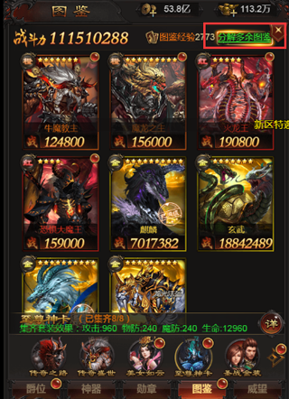 每个图鉴可为玩家增加一定战力,并且品质较好的稀有图鉴还携带特殊属性如伤害减免,攻击加成,生命加成等。集齐一套(类)后,可以激活给力的套装效果哦。