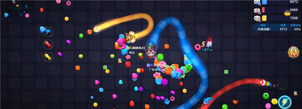 蛇蛇争霸在团战中许多对手会采用绕圈的方式来进攻或者保护自己,我们看准时机从他们的缝隙中穿过,他们就会反应不及而撞死。