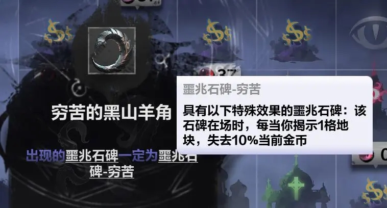 前期确保活着并拿到关键组件,关键道具是【噩兆石碑效果变加钱】这个,山羊角是后面补的。