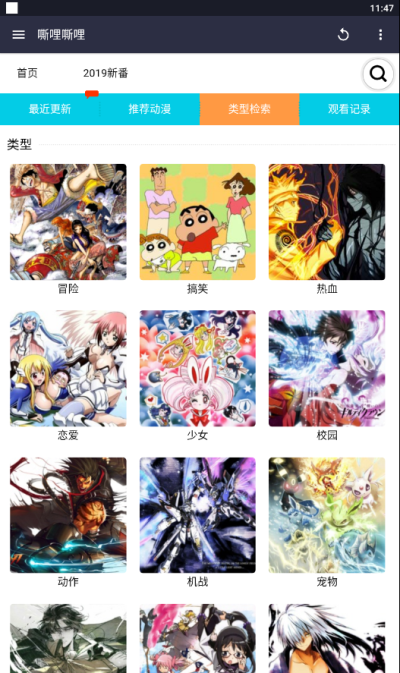 -搜索功能:按动漫类型搜索动画或者漫画。
