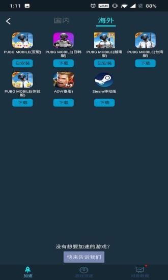 1、通过自研加速技术,对实时类对战及竞技类游戏提供wifi和移动网络加速。