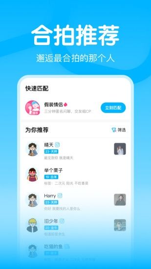 【假装情侣】:一键匹配一个好嗨友,限时匿名闪聊,温暖的陌生人陪你谈天说地。