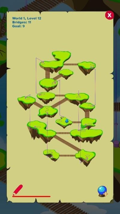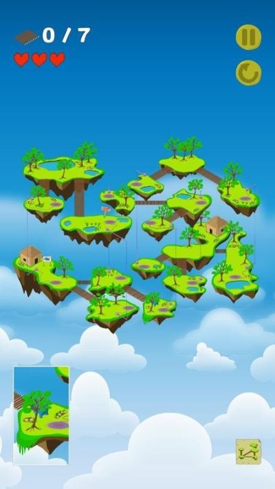 欧拉每次穿过两个漂浮岛屿之间的桥梁时,桥梁就会在他的重量下被毁坏!你的任务是引导笨拙的大象沿着小路走,有足够的桥梁让他摧毁并完成关卡。