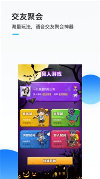 1、边玩边聊,在线轰趴,语音交友聚会神器