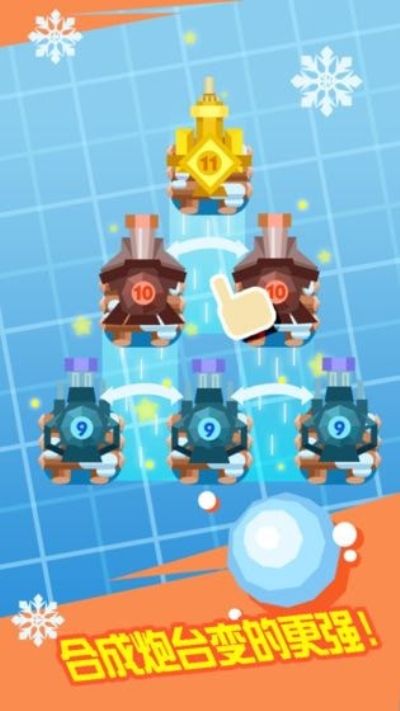 好多好多的雪球进行袭击了,雪球来了游戏,结合了合成的元素,不断的合成强大的炮台,控制好你的炮台去射击这些雪球。