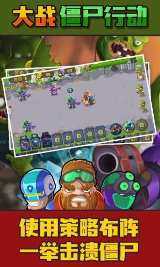《大战僵尸行动》是一款卡通画风的策略战斗射击手游,游戏中设计了丰富多样的僵尸种类以及模型,当然我们这边也有着各样的兵种以及道具,我们将一同协力来保卫我们的家园,阻止僵尸的入侵,快来一起消灭它们吧。