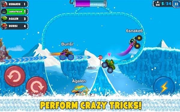 在沙漠或北极圈进行激动人心的比赛。当你超越车内的竞争对手时,拉开反重力机动!在收集涡轮增压器以提高性能的同时,通过疯狂的循环燃烧橡胶,跳山和速度!使用红宝石修改您的汽车进行一些疯狂的升级,以确保您继续统治赛道。