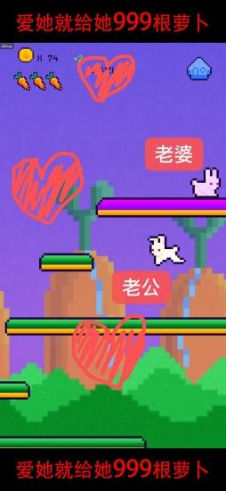 《恩爱兔》(恩爱兔999根萝卜)是一款以兔子为主要角色所倾情研发打造的趣味休闲动作冒险手游,当然这款游戏同样以“爱”为名,这款游戏以一个动作冒险的方式,完全诠释了一个暖男的本职,非常的有趣,如果各位对此游戏感兴趣,那么就速来微茶网下载《恩爱兔》(恩爱兔999根萝卜)吧!