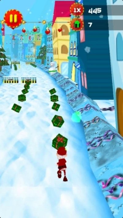 圣诞老人跑酷是一款3D跑酷游戏。这个欢乐老人的思维已经被灯光卡住了,现在处于精神错乱中。拯救圣诞精神的唯一办法就是帮助圣诞老人跑完整个北极的村庄并收集所有意外掉下的礼物。赶快来收集圣诞老人南极村庄雪道上的礼物,越快越好,越多越好。确保所有的好孩子在圣诞节的时候都能收到礼物。跨越冰桥、避开尖冰、越过鸿沟,那些是你在和圣诞老人奔跑的过程中需要面对的唯一障碍。不要错过任何散布在被雪覆盖的北极区域中提升技能的道具和奖励,它们能帮助你更快更持久,这样你就能从世界中收集更多的礼物给好孩子了!一旦你看到这绚丽的3D图效,听到充满想象力的圣诞之歌,你一定会爱上这个游戏的~