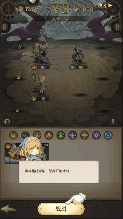 6、在这里选择好出战的英雄,然后就点击战斗;