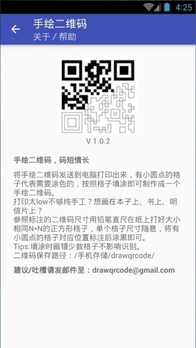 《手绘二维码》是一款能够帮助用户轻松画出二维码的神器。软件告诉用户二维码的尺寸以及格子数,用户只需跟着步骤图画就行,甚至还可以直接保存图片发送进行打印,然后只需涂颜色就好了,非常棒的一款应用,欢迎需要的朋友来下载体验!