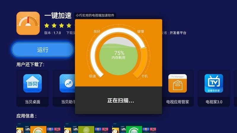 《一键加速》是一款由杭州当贝网络科技有限公司倾情研发打造的趣味电视端口加速软件app,这款软件的功能非常的全面,实用性也非常的强,对于喜欢看电视可又嫌弃电视播放太慢的朋友们,你们还在等啥?速来微茶网下载它吧!