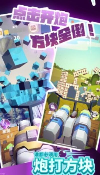 只需要掌握大炮的方向对着前面的方块障碍射击就好了,非常好过,基本都是一次性过的,在射击的时候感觉非常过瘾非常解压,游戏bgm设计的不错,让人很愉悦,下载完就爱不释手,一直玩了好久。不管你飞刀玩的贼棒,还是推土机开得很6。在这里只有疯狂的打出陨石炮弹,才能通关。