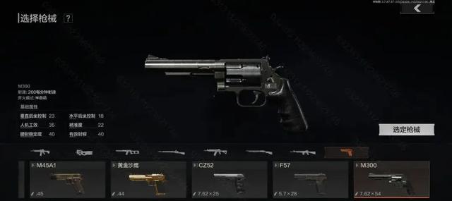 首先新增的是一把转轮手枪M300.它使用7.62×54毫米大口径弹药。枪械后坐力较大,同时可以使用长枪管并且兼容各类高倍镜。但是弹巢和枪管间较大的缝隙导致的气密性问题,使得枪机能量转化效率和射击精度有限。