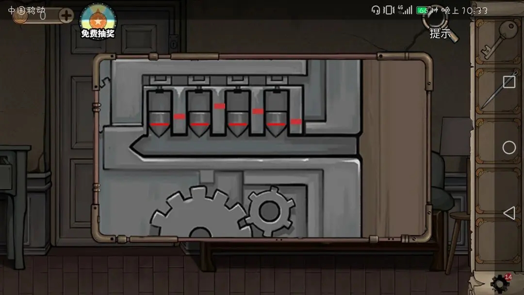 这个我的方法是点一下最右然后等快到的时候快速从右往左把剩下三个点了,打字机那个拼钥匙就行
