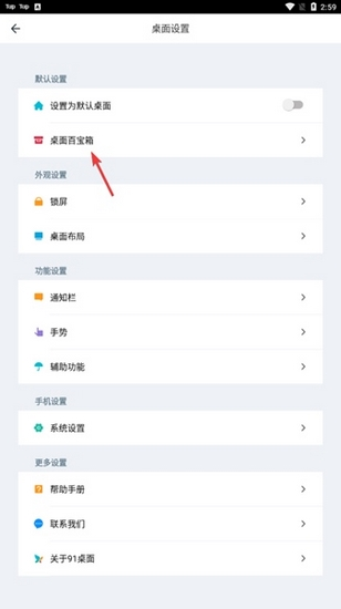 1.我们需要从手机桌面上点击桌面设置,进入桌面设置之后,找到桌面百宝箱功能