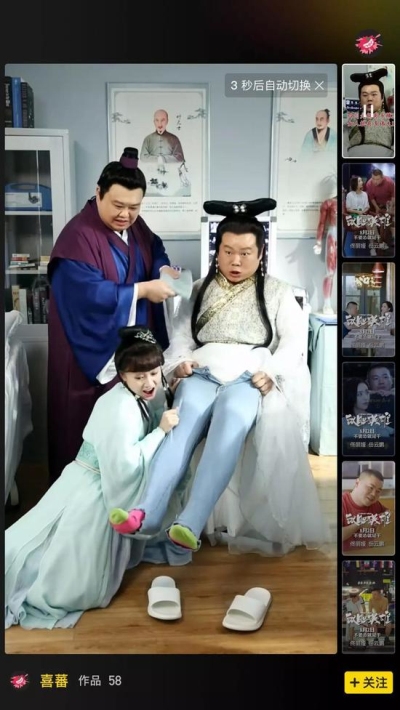 “土味”曾是快手短视频显著的标签,在快手小剧场的内容中,整体仍然倾向于简单不复杂、热梗段子为主体的风格,也可以称之为“土味短剧”。譬如首屏推荐的《这个王爷我想退货》,主要讲述女主角体验了一款穿越游戏,真的穿越后,嫁给了一位为暗中蓄力争皇位而装傻的英俊王爷,却遭遇宫斗、婢女陷害、英雄救美、死而复生等桥段的古装爱情喜剧。