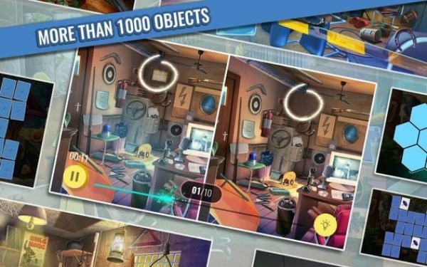 隐藏物品游戏等级:按图搜索,按剪影搜索,字谜中的物体,夜间模式,记忆游戏,找到差异。