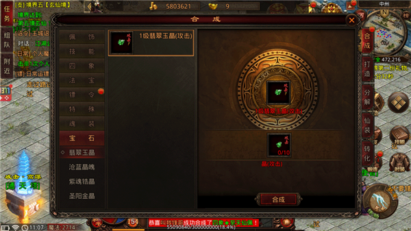 1、翡翠玉晶:为角色提供攻击、魔法、道术的宝石属性;