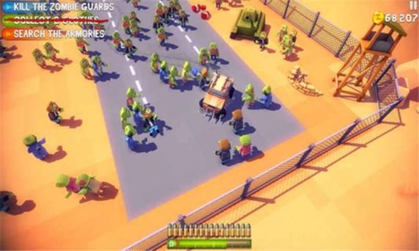 面对死亡大军,一个强大的僵尸战车是非常重要的,无论是小车、皮卡还是大卡车都可以改装成为打僵尸神奇,撞角、装甲、机枪、火炮……只要你的车还扛得住,就拼命往上安装吧。玩家的使命就是驾驶这些战车去搜寻幸存的人类,并突破重重包围回到避难所。撞击、碾压、火力扫射……总之可以杀戮僵尸的时候,一定不要客气。虽然有了神器战车的帮助,但是玩家们依然会面对一些危险,如异常庞大的僵尸集群,或者是强大的僵尸,这就需要老司机有明智的判断和风骚的车技。