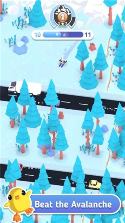 这是一款有趣的滑雪游戏,疯狂雪山手游一大堆可爱的角色可以解锁!