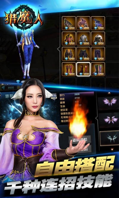 1、一键连招技能自由搭配,告别枯燥的技能多选一;