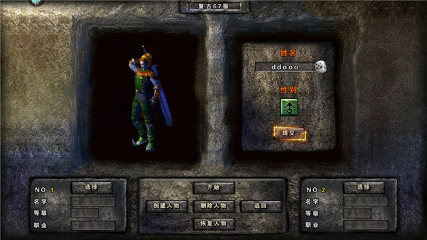 3、开始游戏之前需要先给自己像一个名字然后选择性别,点击“提交”。