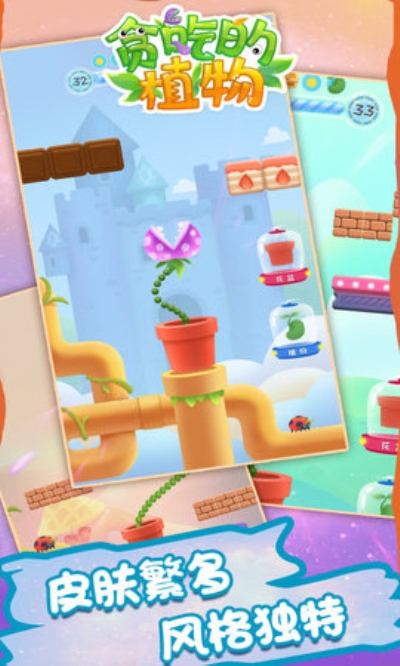1、卡通风格的植株画面,丰富多变的背景主题,等待玩家进行贪食挑战。