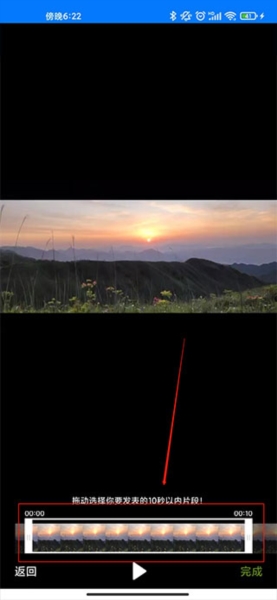 2、选择想要剪辑的视频,然后选择自己想要截取的片段,点击完成即可;