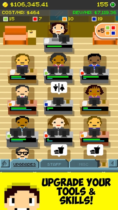 创业模拟器游戏是一款十分好玩的模拟经营游戏,化身为一家公司的老板,与其他同行展开竞争,你最大的梦想就是让自己公司成为世界上闻名的传奇存在,这一梦想的基础,你需要让公司的每一个阶段都保持正确的发展方向,严格执行,让公司越做越大,越做越强。