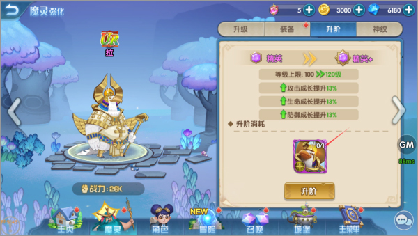 在魔灵强化界面选择页签【升阶】,我们就可以看到升阶所需的魔灵和数量。
