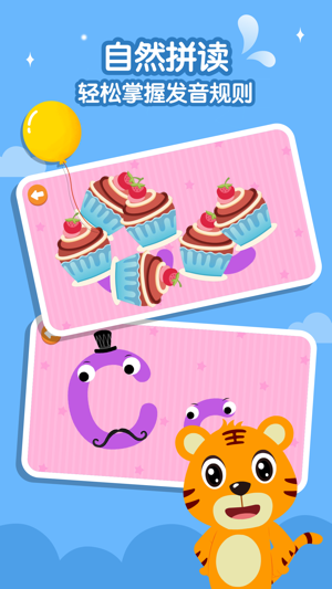 2、APP中的点击字母蛋、字母跟读、单词动画、徽章收集等设计,让孩子在玩耍中不知不觉学习到自然发音的相关知识