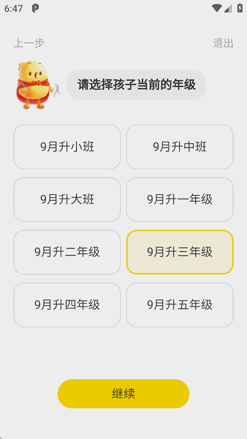 1、打开叫叫app,选择您所在的年纪等一系列学前信息(可跳过);