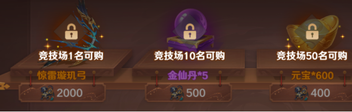 竞技场第一名的特别奖励——惊雷璇玑弓,在前期能给战力带来提升。