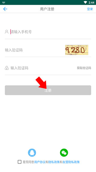 3、来到注册界面后输入我们的手机号并填写右侧验证码后即可获取手机短信验证码,之后完善一些资料即可完成注册流程。
