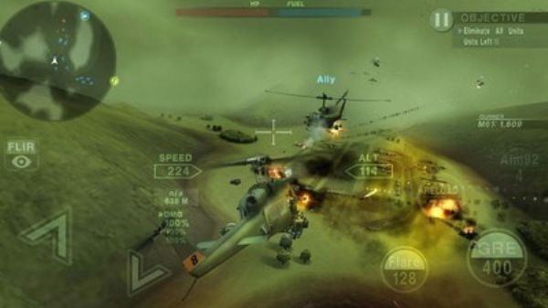 喋血直升机是一款非常逼真的现代战争飞行射击类游戏,使用各种机体和武器,强力武装,升级军用机,挑战极限,适材适所地使用AIM, AGM, 智能炸弹和鱼雷等多种强力武器,安装想要的武器,运用自己的专属军用机,利用地形和高度,尽享自己独有的战略战斗。现代战争背景,形象逼真的3D飞行战斗动作游戏,感受辽阔战场上惊心动魄的速度感。