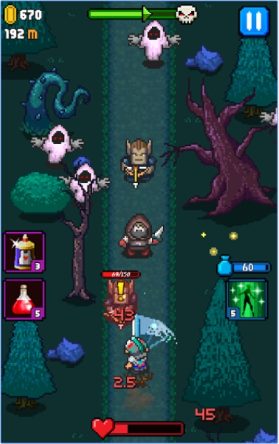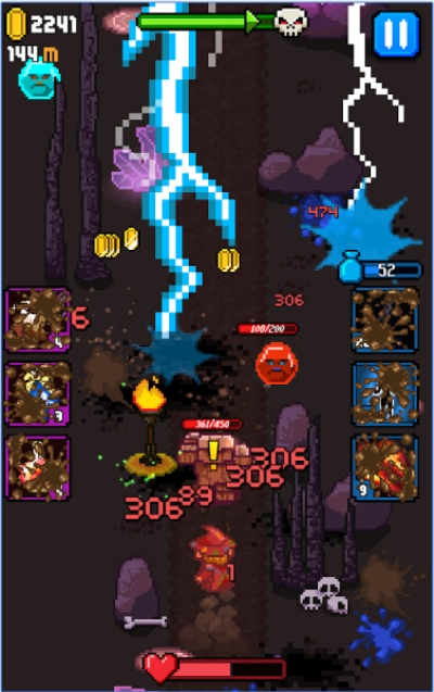 《探索冲刺2》是一款像素风格的冒险闯关类RPG手游。玩家可以操纵英雄在地下冒险,你可以随身带着宠物帮助你闯关。探索的过程中可以收集金币,可以用这些金币解锁新的角色,每个角色拥有不同的技能。游戏中隔几个关卡就会换一个boss,击败它还能获得新的技能书。游戏比较硬核,如果玩家死了就要重新开始。所以角色升级和道具选择就要慎重考虑了。