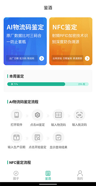 茅台镇国酒价格与鉴定app是一个专业的真伪鉴定工具,帮助用户快速区分飞天茅台的真假。软件结合了实时行情查询和全面的信息资源,可供经销商和回收商广泛使用。用户只需利用手机NFC技术轻触酒瓶标签,便能迅速获取真伪信息,通过比对原厂物流数据,每一瓶酒的真实性。它还记录了全国流通商品的数据,提供即时更新的信息,极大提升了识别效率。操作简便,是生成报告还是查询详情,都能让你轻松掌握酒的真实情况,避免上当受骗。想要购买的每一瓶茅台都是正品,快来下载体验吧!